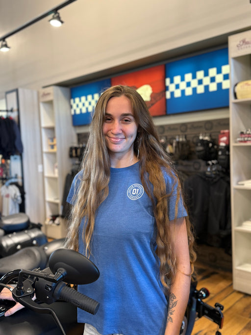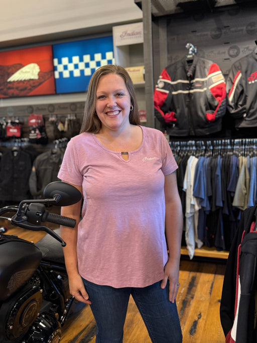 View full detailsSoft purple with bold Indian Motorcycle pride—this tee keeps features a keyhole design on the front and iconic branding on the back. Indian Moto...