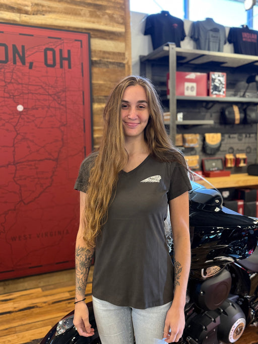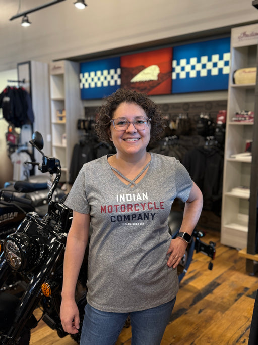 View full detailsStay comfortable and cool in this Indian Motorcycle t-shirt. Print on front & back V-neck style neckline Relaxed Fit: Our loosest fit design...