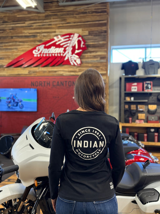 View full detailsThis long sleeve features a small chest logo and a bold graphic on the back—classic Indian Motorcycle style from every angle. Indian Motorcycle ...