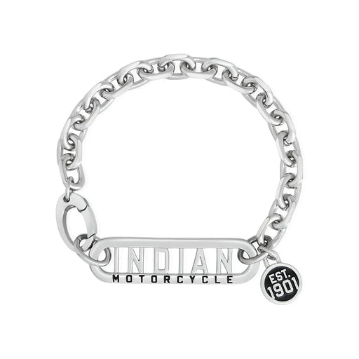 View full detailsMake a bold statement with the Midnight Indian Motorcycle Script Bracelet. This men's bracelet is constructed from premium stainless steel with a s...
