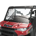 This 2-piece hard coated poly Flip Down Windshield allows for true modularity for your RANGER Cab System. In its up position, experience full protection from wind, mud, rain, or whatever you encounter. In the down position, take in the oncoming wind to provide a comfortable and cool cab environment, while the top is securely held in place on the hood. Or, completely remove the upper section for the extended warm season. With Lock & Ride technology, easily switch up your UTV windshield configuration in seconds. Engineered for comfort in any condition, without hindering your line of sight.